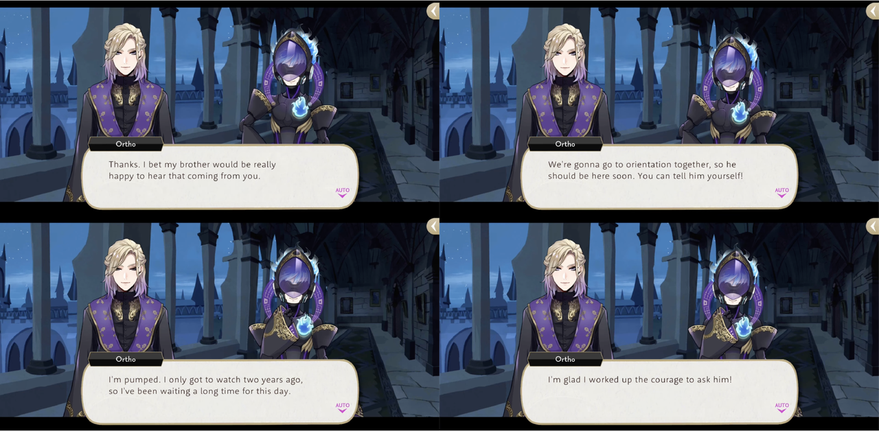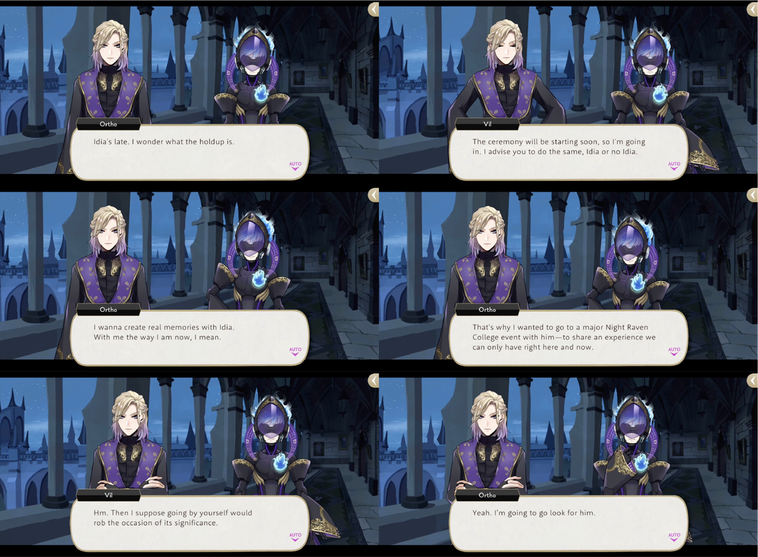 Vil encourages Ortho to go to the ceremony by himself but Ortho insists, “I wanna create real memories with Idia. With me the way I am now, I mean. That’s why I wanted to go to a major Night Raven College event with him—to share an experience we can only have right here and now.”