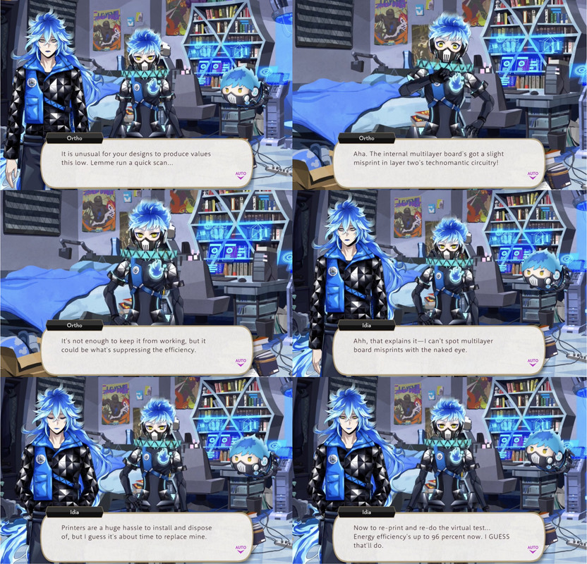 With a control system of Ortho’s design (and his help with identifying multilayer board misprints) Idia crafts an antigravity unit for the tsum that operates at 96% energy efficiency, but tries to excuse himself from testing.
