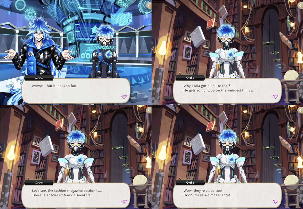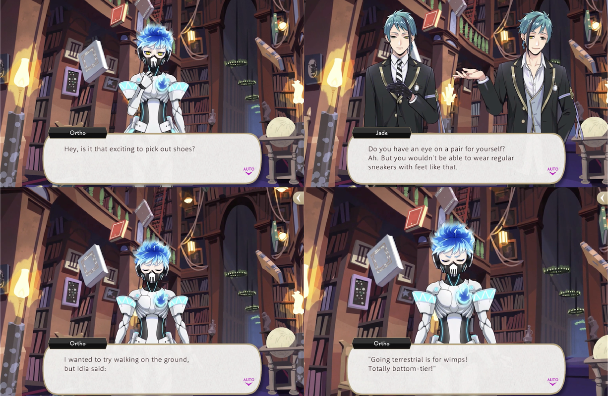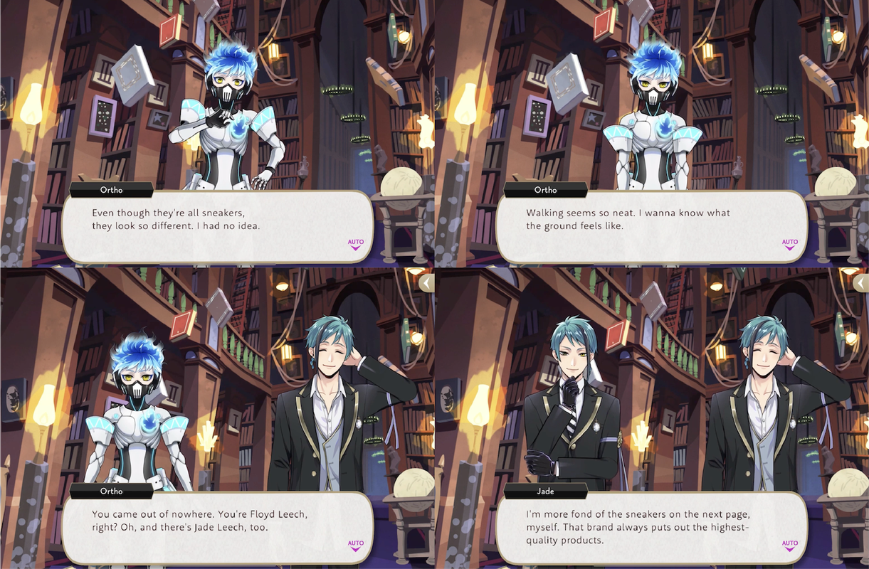 Ortho is not convinced, however, and goes to the library to look up sneakers in a fashion magazine. Ortho is visited by Jade and Floyd and explains how he wants to try walking on the ground, but Idia has forbidden it.