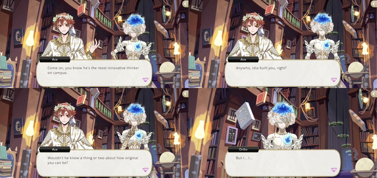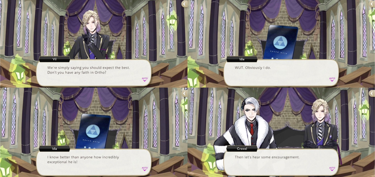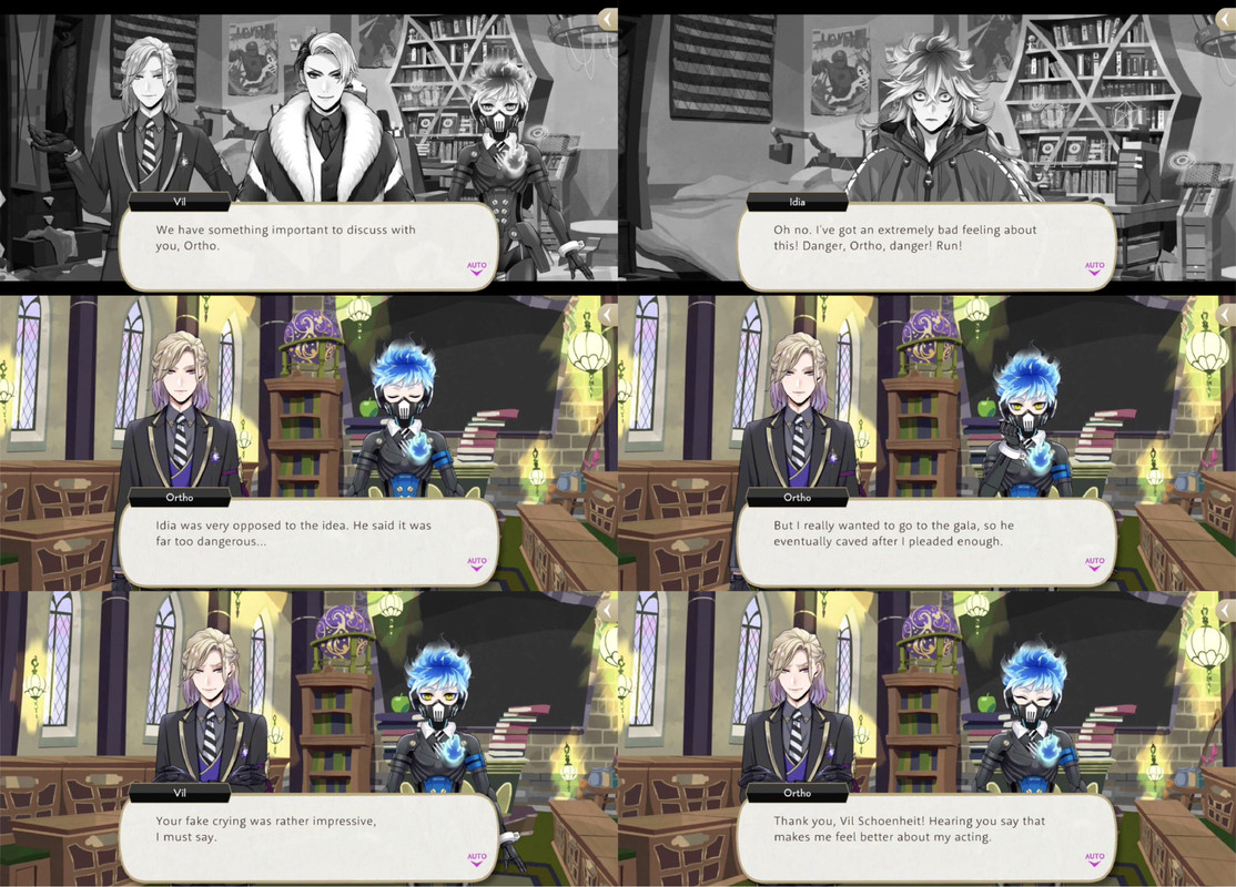 Vil and Crewel invite Ortho to participate in Fairy Gala IF, and when they appear in Ignihyge Idia responds, “Danger, Ortho, danger! Run!”