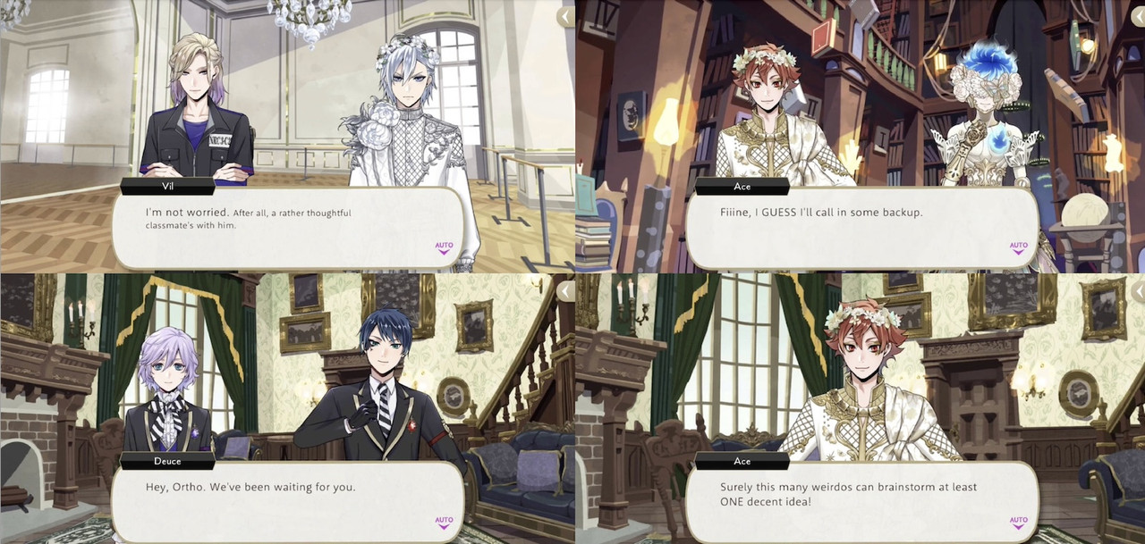 The problem becomes something of a crisis for Ortho, but Vil is unconcerned as a “rather thoughtful classmate” goes to his aid: Ace. Ace gathers the rest of the first years (and Sebek invites himself), and their conversations inspire Ortho.