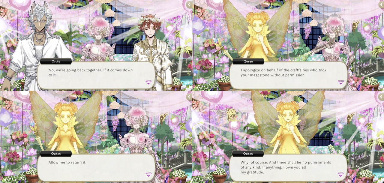 Jack accidentally compromises the illusion that enabled them to steal back the school’s magestone by sneezing and Ortho comes close to during off his technomatic beam in order for them to escape, but after Silver apologizes on the group’s behalf the fairy queen, too, apologizes for the theft of the stone, thanking Ortho specifically for his “stirring performance.”