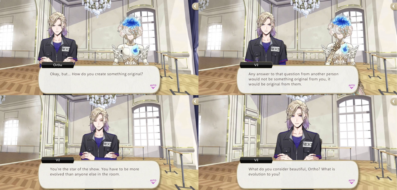 Vil instructs Ortho to come up with something original and, when Ortho asks how, Vil refuses to answer. (“I want to hear YOUR thoughts on the matter. Don’t just parrot something you found online.”)