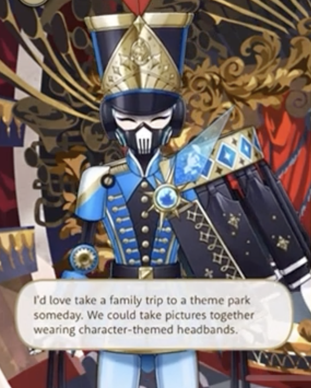 He explains, “It represents my belief that when Idia and I work together, we can clear any quest, no matter how high the difficulty. So I hope he’ll take the hint and go on an amusement park adventure with me next time we get the chance!”