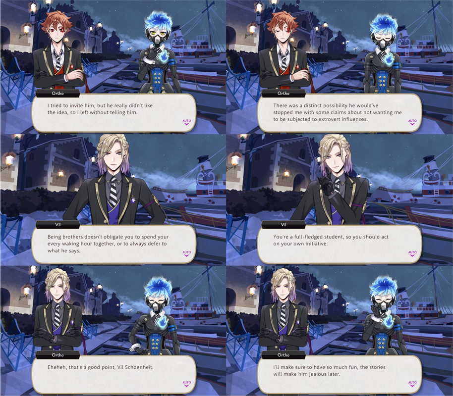 Ortho ultimately goes to Playfulland without telling Idia, saying, “There was a distinct possibility he would’ve stopped me with some claims about not wanting me to be subjected to extrovert influences.”