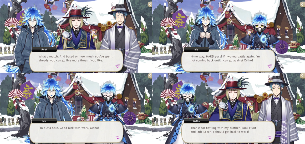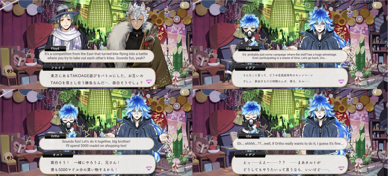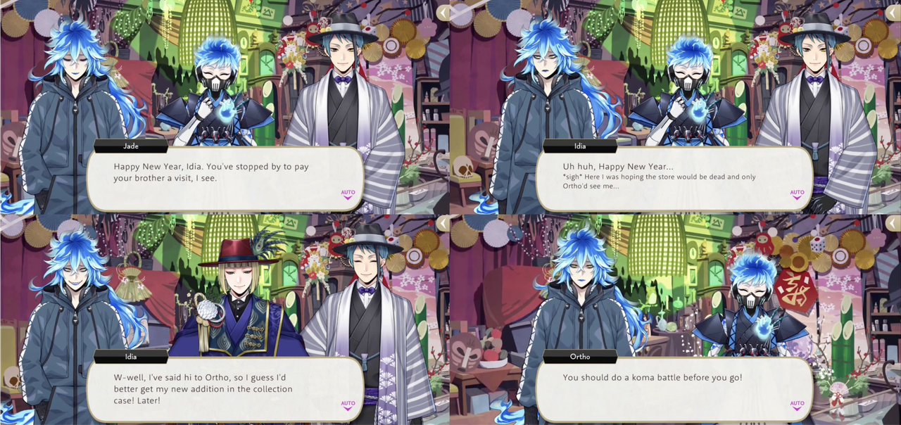 We have repeated examples of Ortho successfully convincing Idia to do things that he wouldn’t normally do: after Floyd and Jack invite them to compete in a game during New Year’s Idia declines on the grounds that it is likely just a campaign where the staff will have a huge advantage, making it a waste of time.