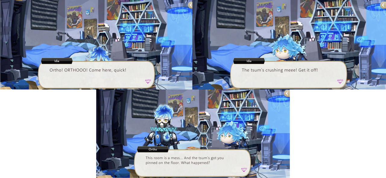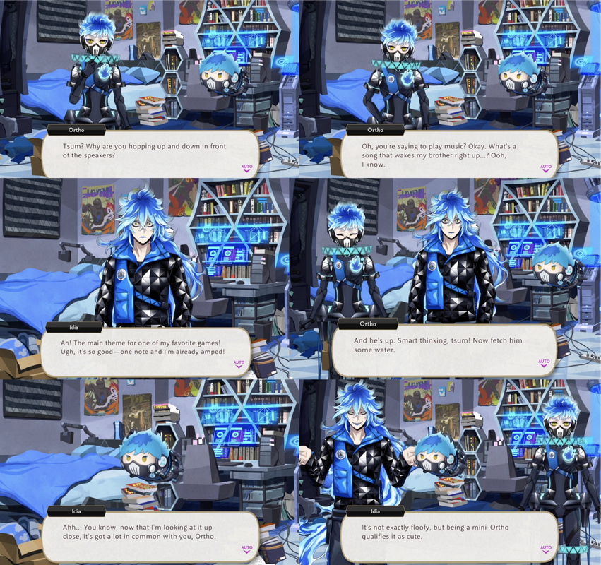Ortho’s tsum seems to know Idia as well as Ortho himself, waking him up from a post-all-nighter crash by playing the main theme from one of Idia’s favorite games.