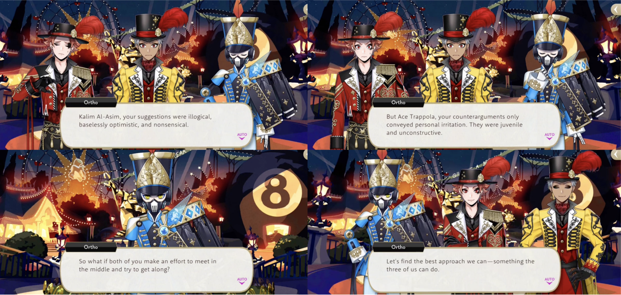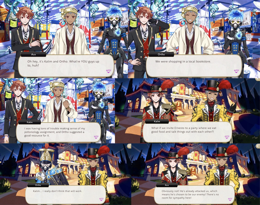 Ace and Kalim get into an argument over Kalim’s idea and Ortho interrupts, saying, “Kalim Al-Asim, your suggestions were illogical, baselessly optimistic, and nonsensical. But Ace Trappola, your counterarguments only conveyed personal irritation. They were juvenile and unconstructive.”