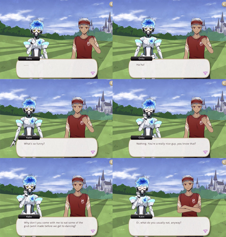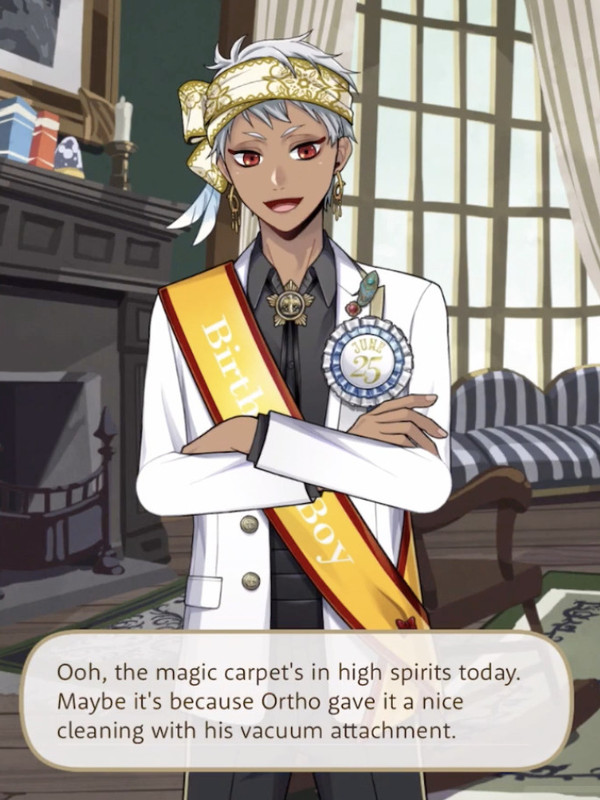 Ortho seems fond of Kalim, saying that he is a really nice guy in a vignette. Perhaps not realizing that Ortho cannot eat, Kalim invites him to share a meal that was made for him by Jamil.