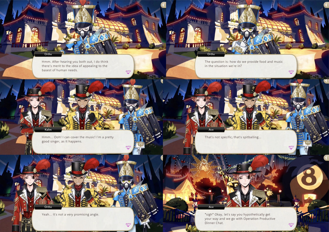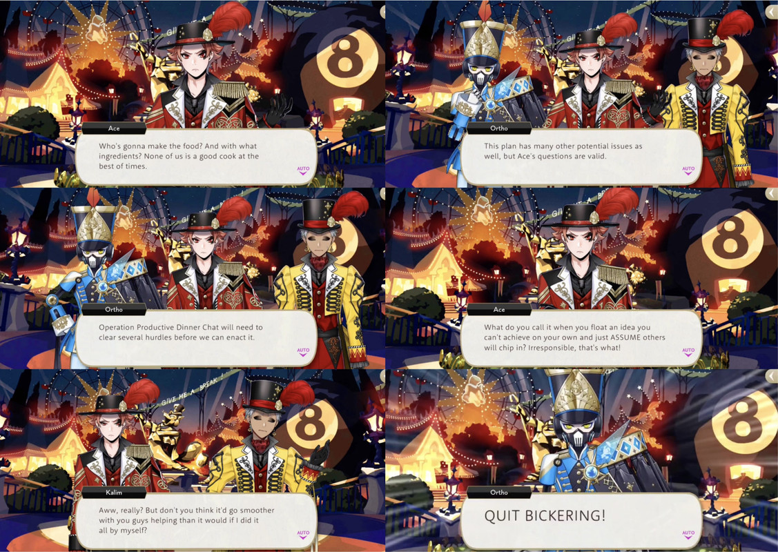 Ace, Kalim and Ortho are the final survivors of the drama of Playfulland. Kalim’s suggested solution to their problems is inviting Fellow to a party in order to “eat good food and talk things out with each other.”