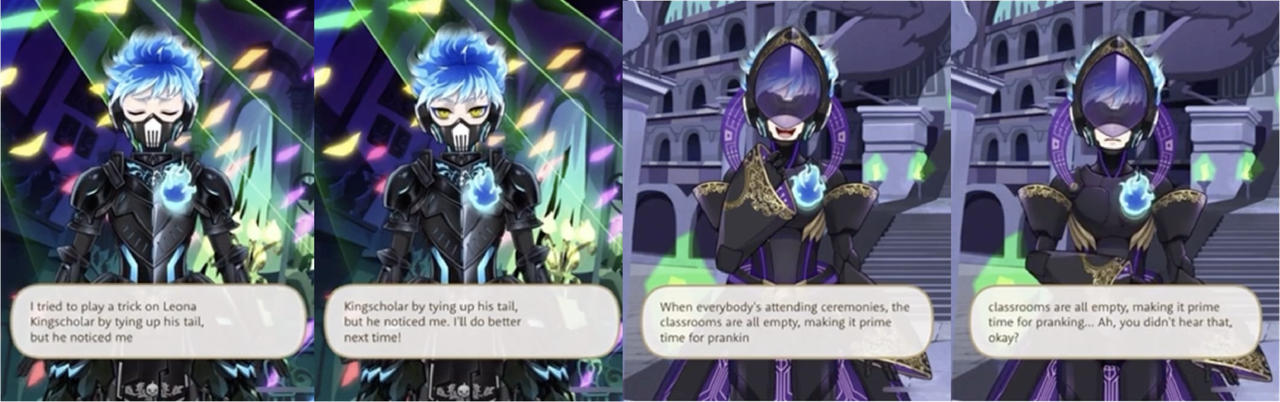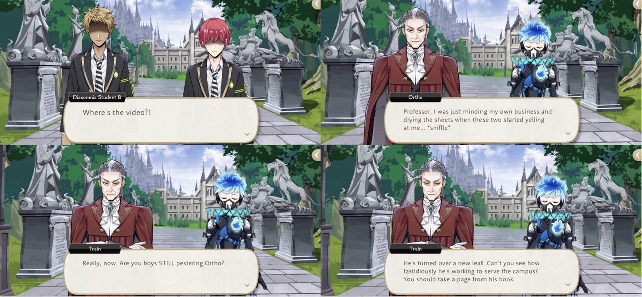 Much like Lilia, Ortho seems to enjoy pranks. He mentions trying to “play a trick on Leona Kingscholar by tying up his tail” and says that “When everybody’s attending ceremonies, the classrooms are all empty, making it prime time for pranking.”
