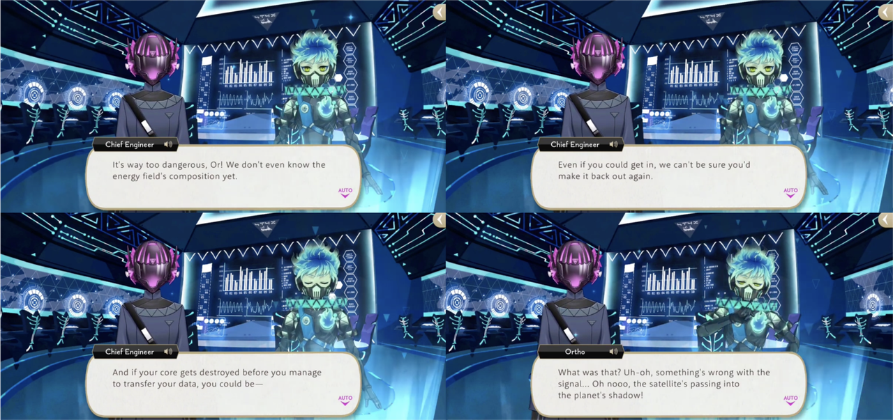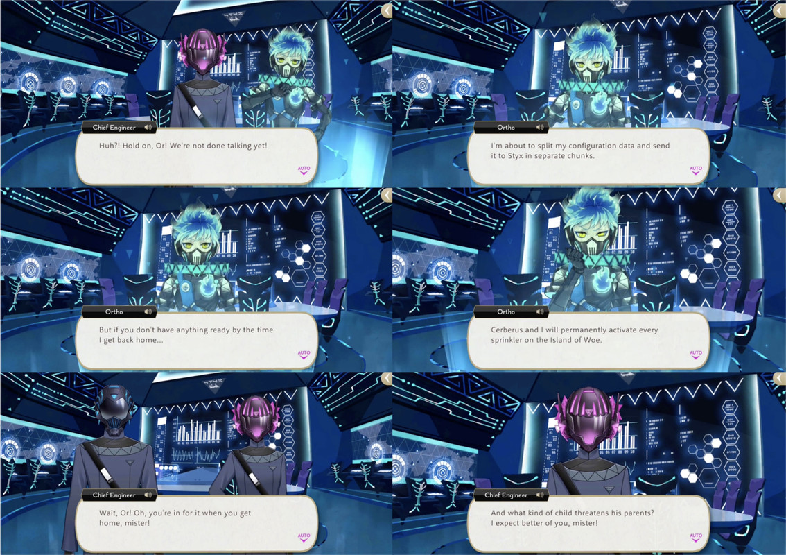 When Ortho successfully reaches STYX he is chastised with, “what kind of child threatens his parents? I expect better of you, mister!”