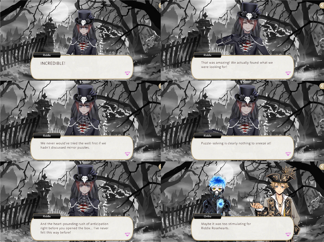 Ruggie tells him, “never, ever tell Riddle what you just told me.” Riddle is delighted by finding what they were looking for (unaware that the hunt was instigated by Ortho’s misdirect), expressing excitement at “the heart-pounding rush of anticipation right before (Ortho) opened the box…I’ve never felt this way before!”