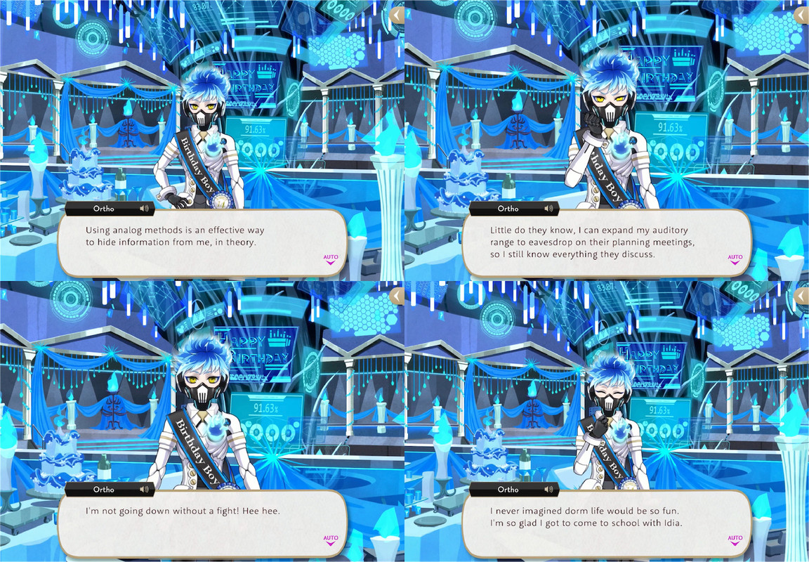 During his birthday vignette Ortho explains that the students of Ignihyde try to hide information from him by using analog methods like handwriting, but “little do they know, I can expand my auditory range to eavesdrop on their planning meetings, so I still know everything they discuss.”