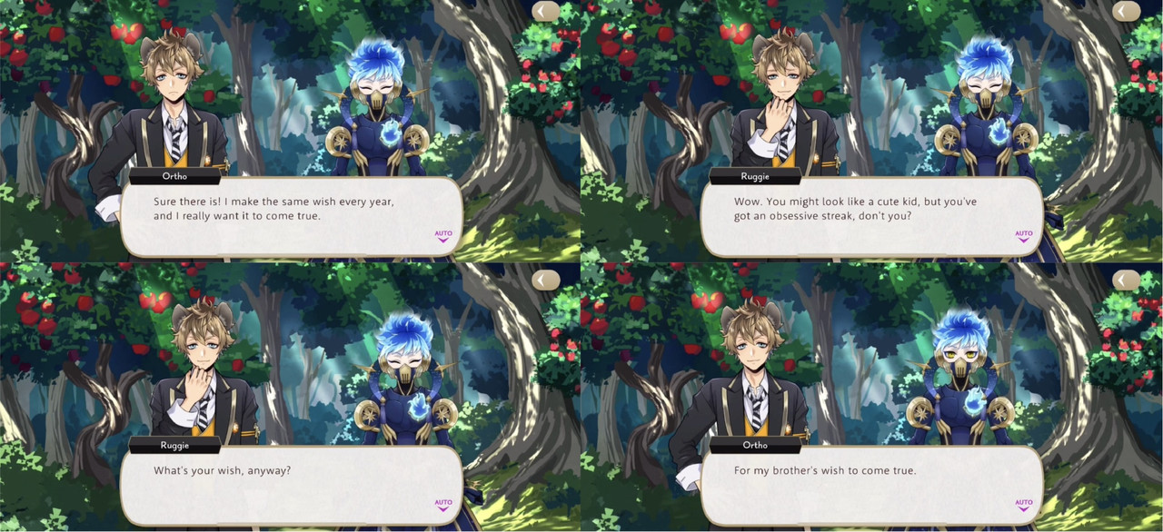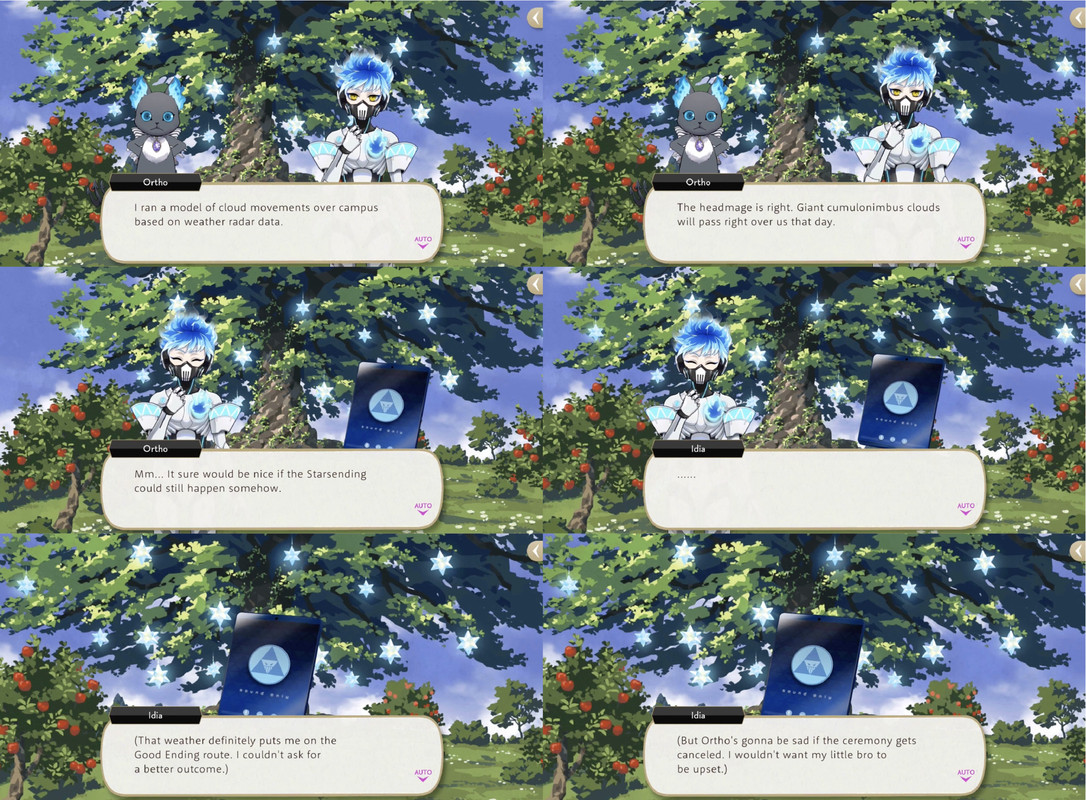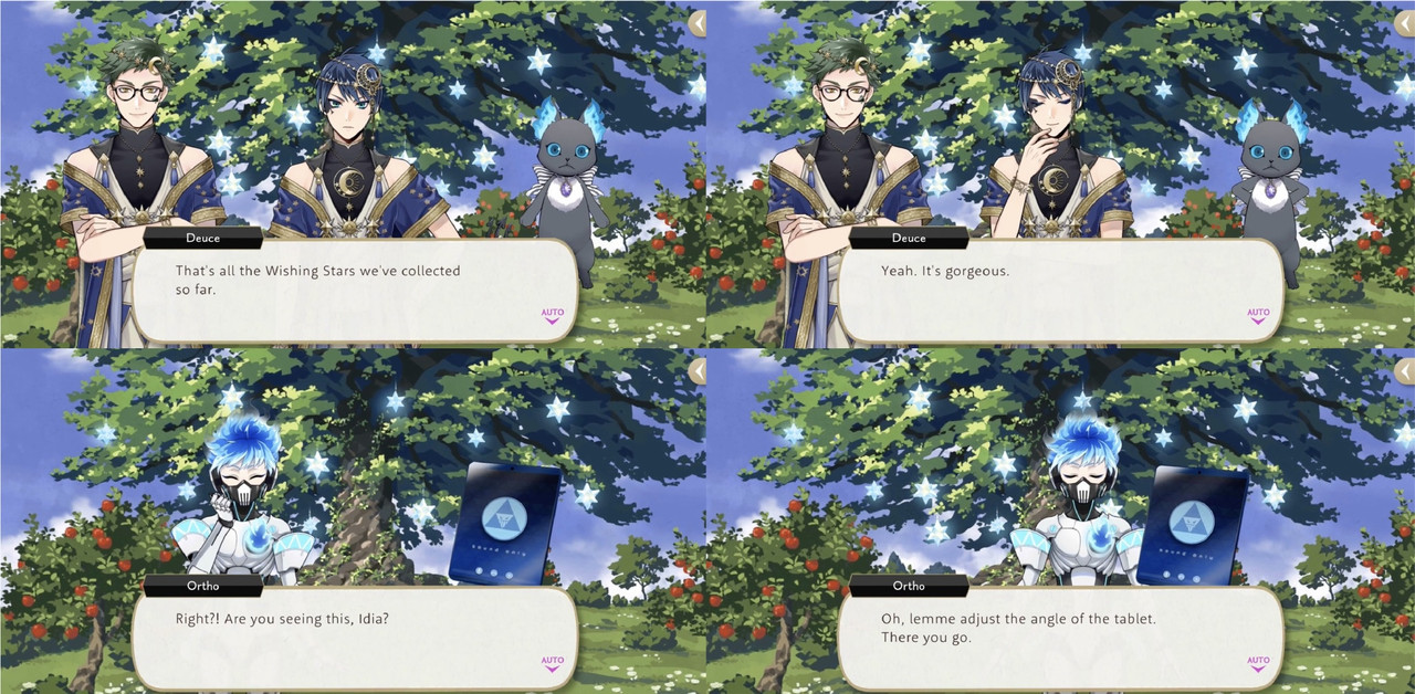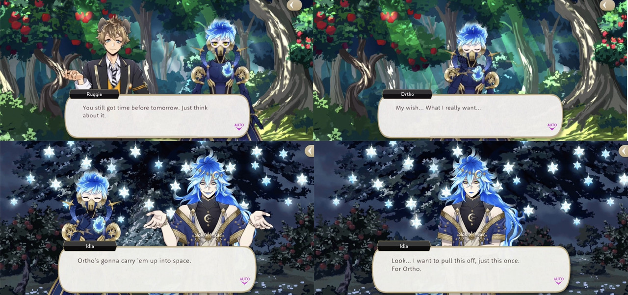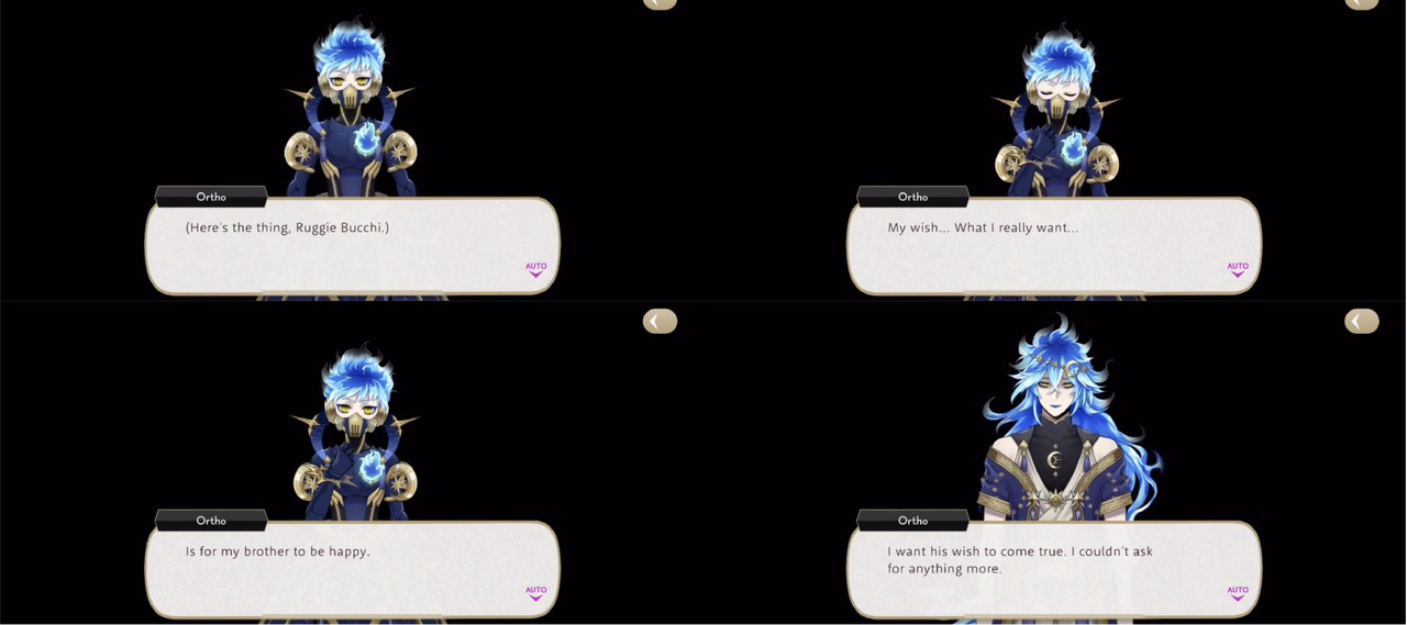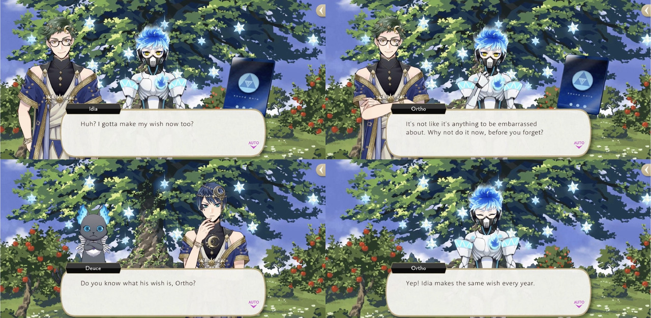 Ortho explains that it was a game that they played when they were younger, but the development team disbanded after a sequel was announced. Despite not having a wishing star of his own (as Ortho was not a student at the time), Ortho wishes for Idia’s wish to come true, saying, “He’s the most important person in the world to me.”