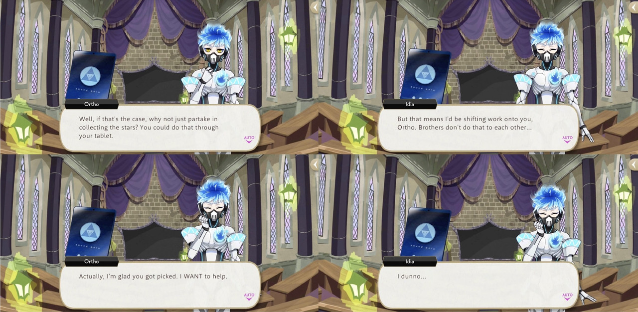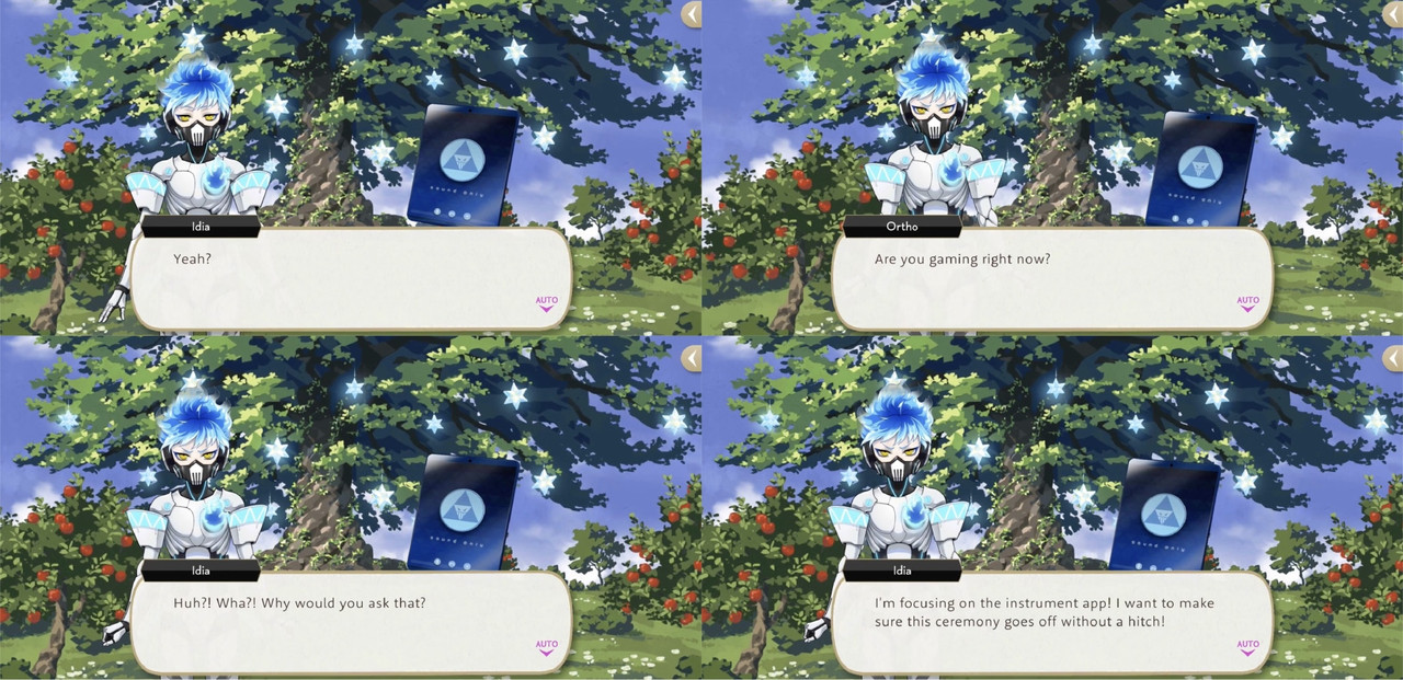 Idia reluctantly accepts Ortho’s offer to assist him so that Idia himself can participate without leaving his room, reflecting that, “For some reason, Ortho gets really jazzed about the Starsending every year.”