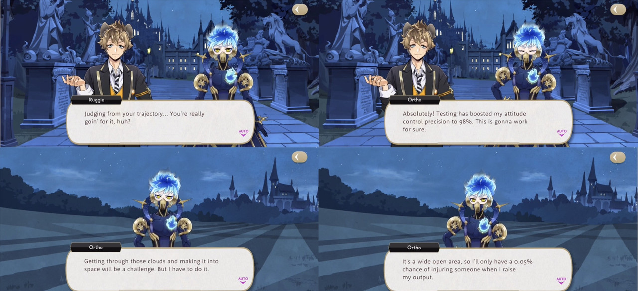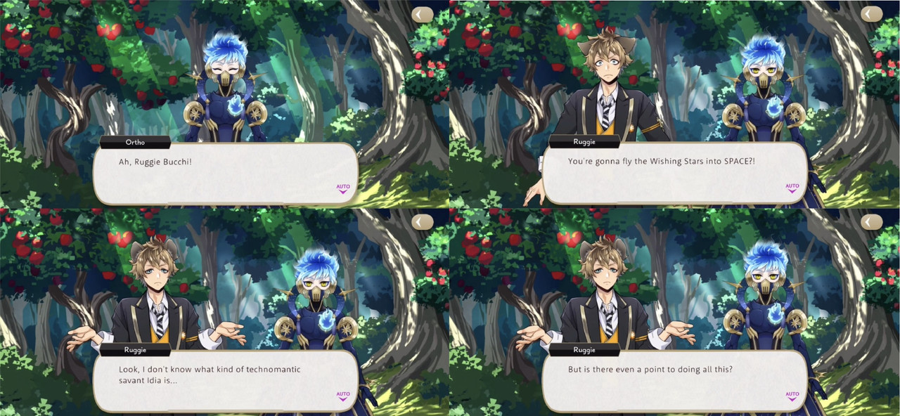 During the Wish Upon a Star event Idia creates Stargazer Gear for Ortho, capable of carrying him into space so that he can take the wishing stars above the clouds. While testing out his new body Ortho runs into Ruggie, who asks, “…is there even a point to doing all this?” Ortho says it is to make Idia’s wish come true.