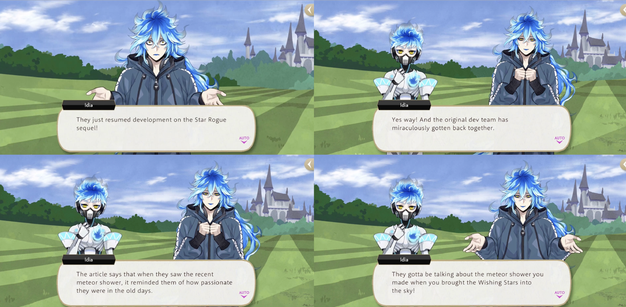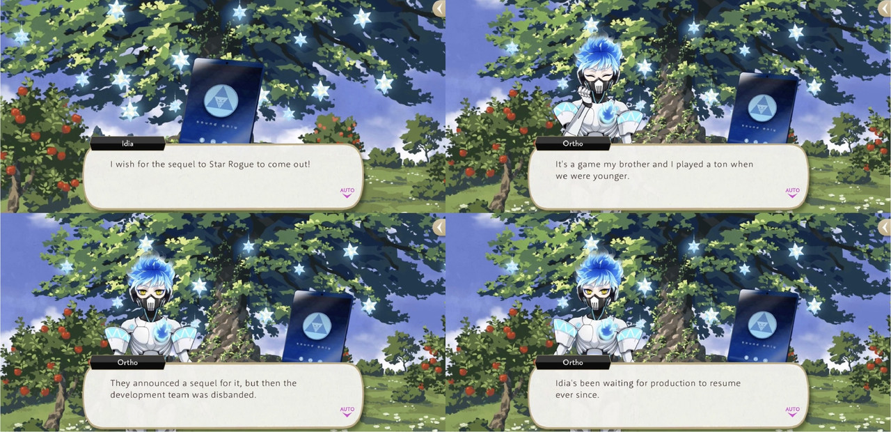 After the event it is revealed that “the original dev team has miraculously gotten back together” after they saw the Ortho-created meteor shower, with development on the Star Rogue sequel resuming, and both Ortho and Idia getting their wishes granted.
