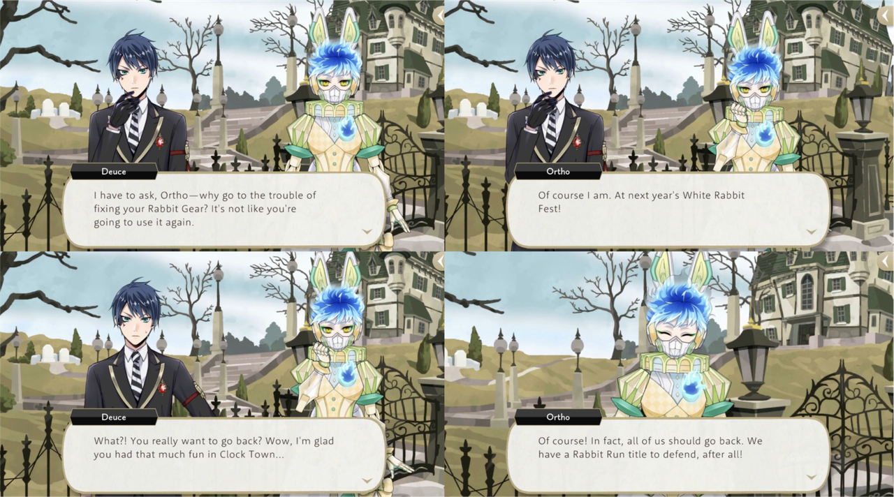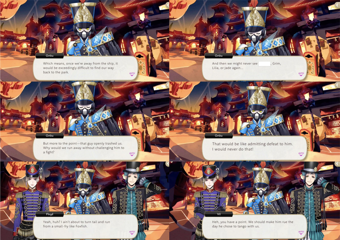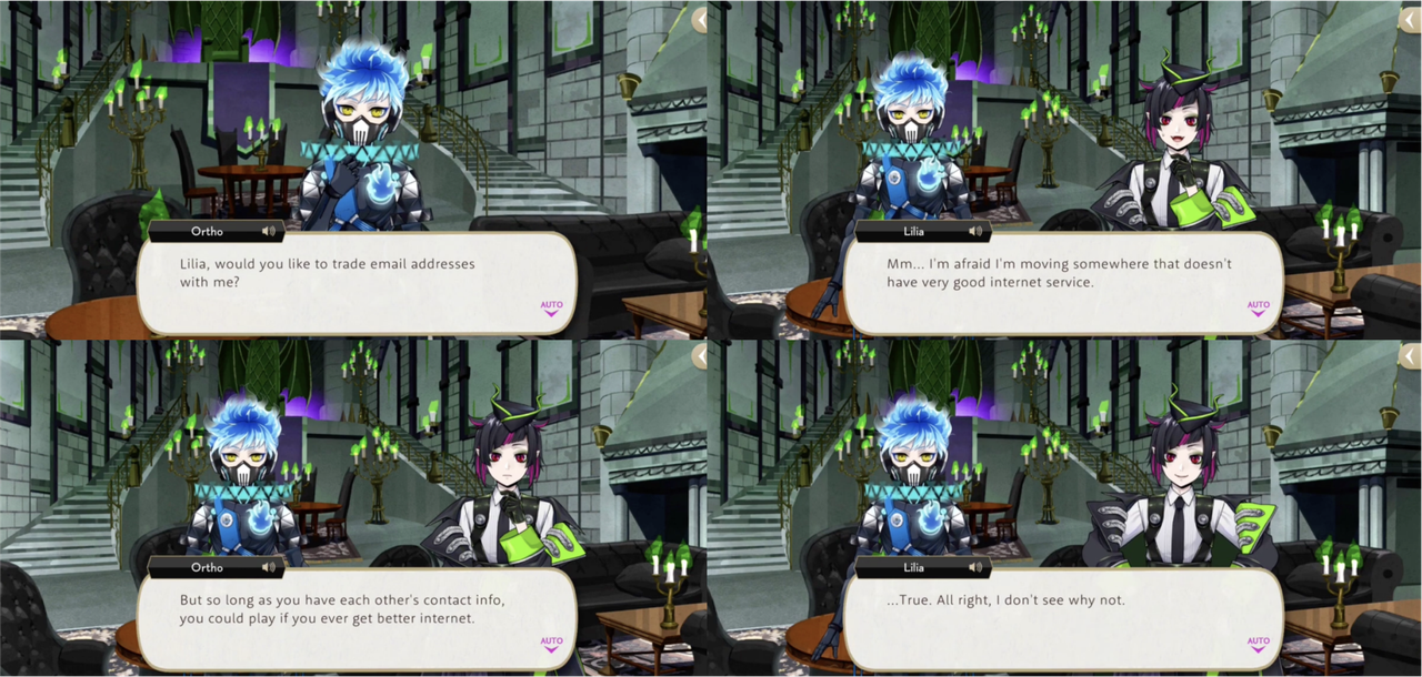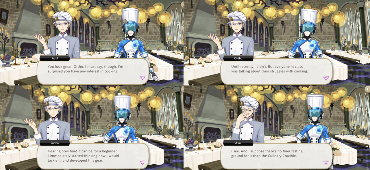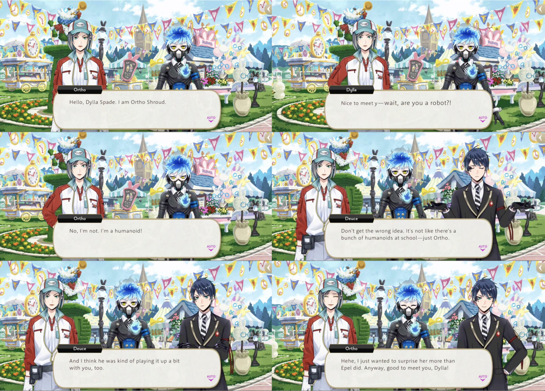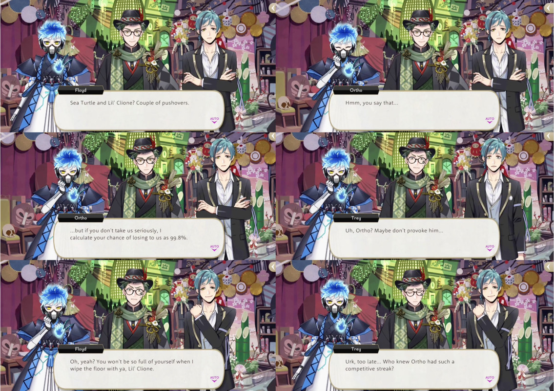 Ortho also pressures Lilia for his contact information despite Lilia’s attempts to dissuade him, and encourages him to introduce his gaming friend to Idia.