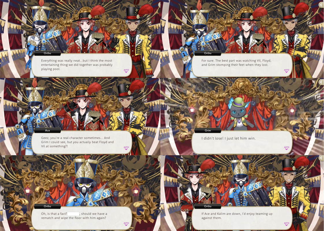 When Grim says that he let Ortho win, Ortho says they can have a rematch and he will “wipe the floor with (Grim) again,” and that he’d like to team up against Ace and Kalim as well.