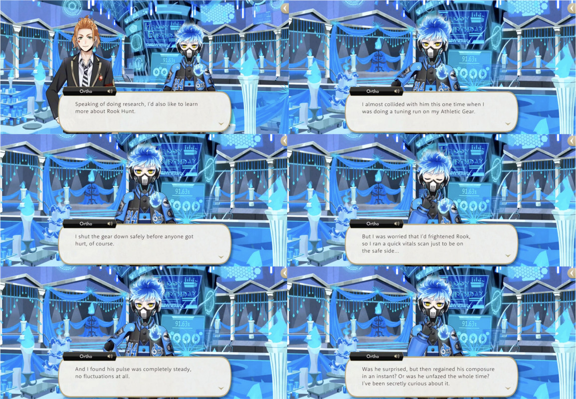 And Rook has baffled Ortho before: Ortho related an incident where he almost collided with Rook during a tuning run on his athletic gear. While no one was hurt, he’d worried that he’d frightened Rook and ran a vitals scan to be safe, only to discover that Rook’s pulse was completely steady with no fluctuations at all.