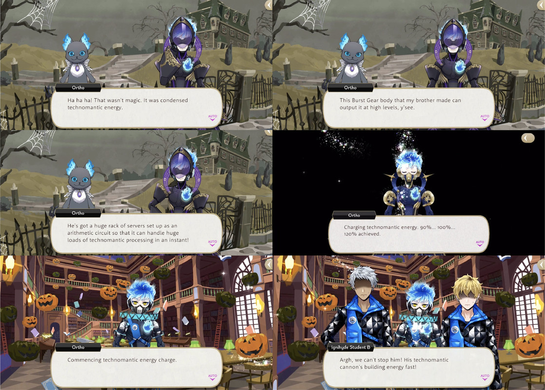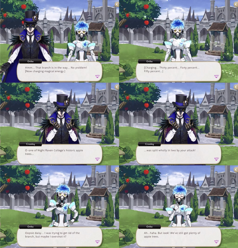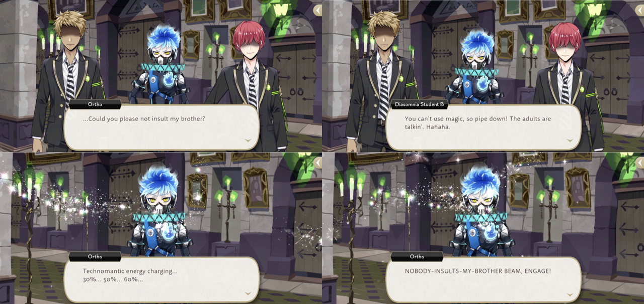 Ortho is also equipped with a “technomantic beam” which he threatens to fire at the school in order to save Idia during Phantom Bride.