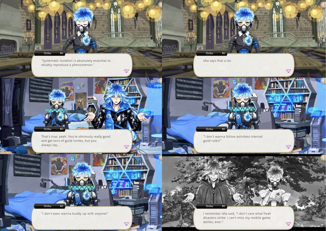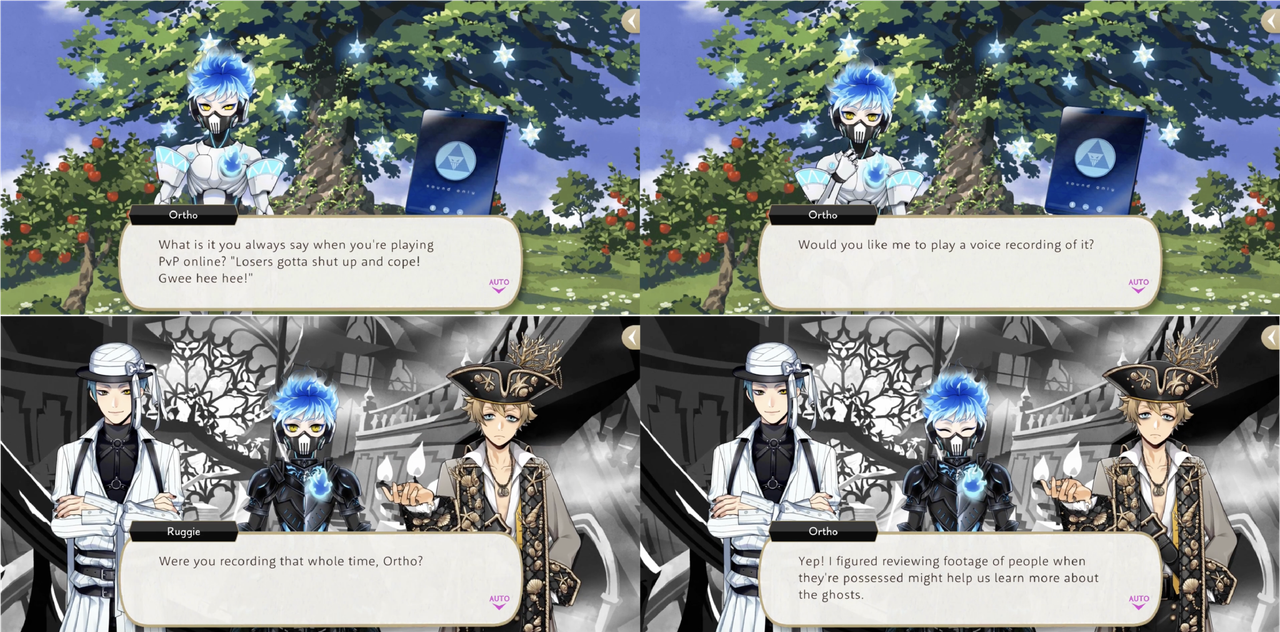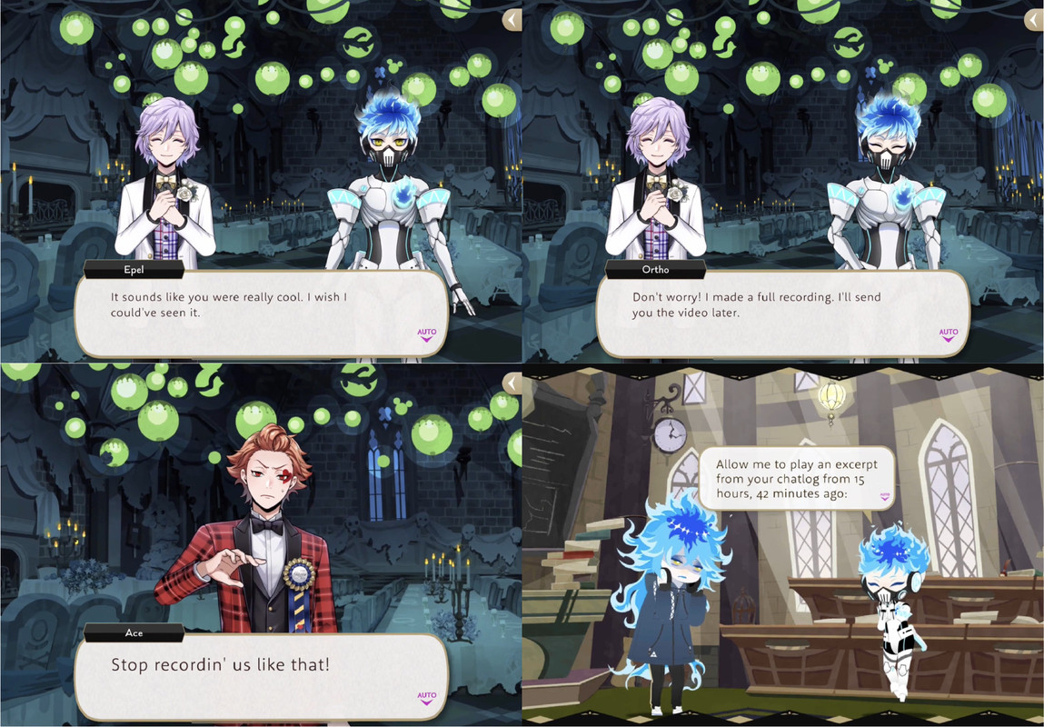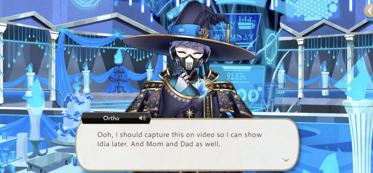 Ortho often records visual data in the form of photos and video, and he seems to keep chat logs/voice recordings from Idia, quoting Idia back to himself and other people, verbatim.