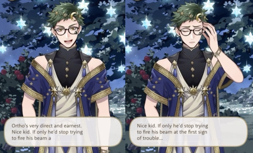 Idia seems aware of this, and it is a running theme in the Wish Upon a Star event, as well. This might tie into Ortho’s constant photography: after winning a bet to make the losers do anything the winner says, he forces the group of Vil, Floyd and Jade to take a picture with him in a standee (Jade does not require any convincing).
