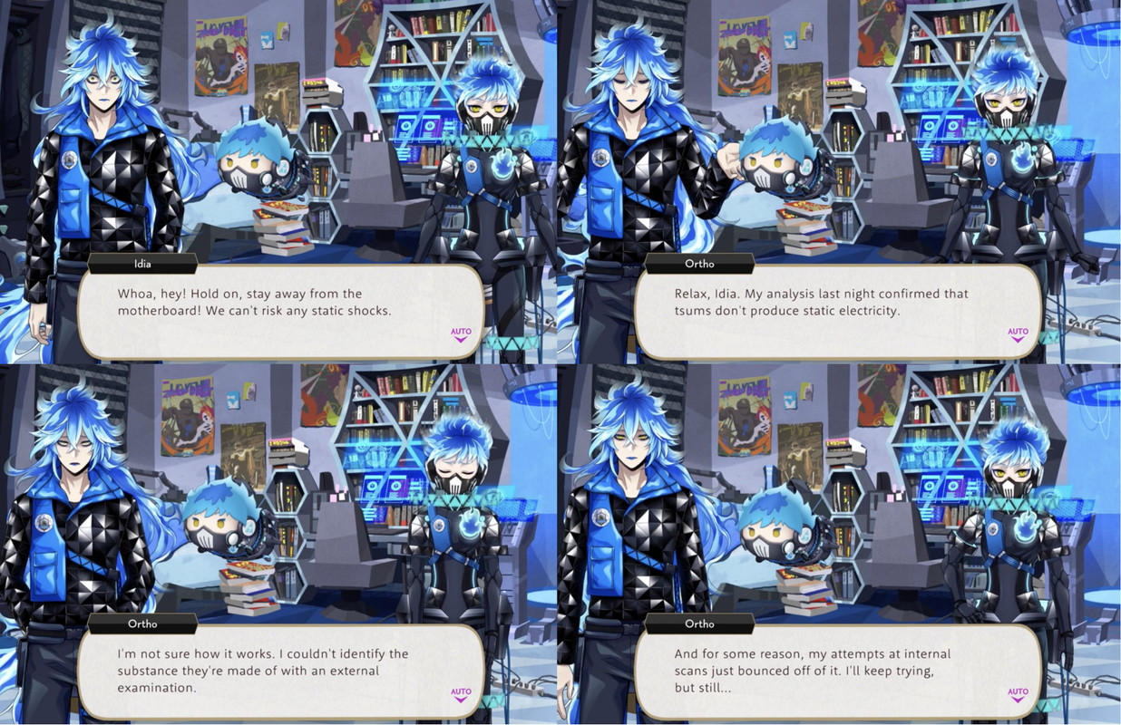 Ortho will reference the various forms of analysis that he can perform, though his attempts at scanning his Tsum fail to identify what it is made out of.