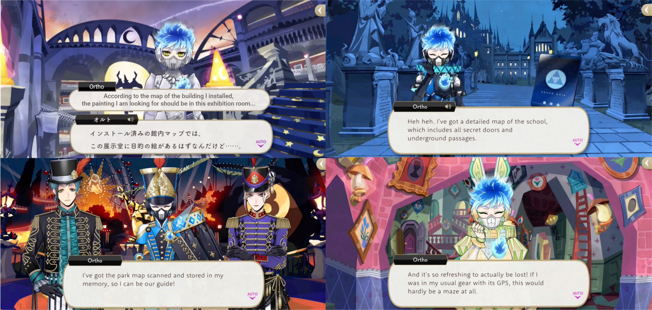 Ortho will often reference the various maps that he has access to, such as a detailed map of the school (“Which includes all secret doors and underground passages”), of Playfulland and of a museum. When he is in gear without any GPS and becomes lost during the White Rabbit Fes event he describes the experience as “refreshing.”