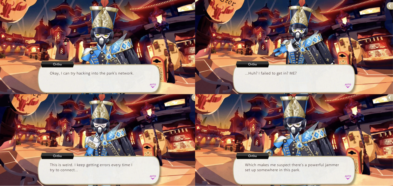 While a talented hacker Ortho fails to hack into Playfulland’s network, and he guesses that there is a powerful jammer set up on the grounds, so it seems his hacking is not infallible.
