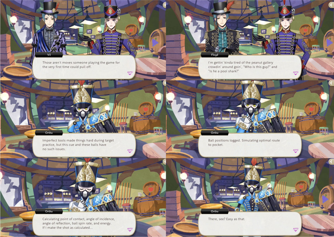 Ortho plays pool for the first time during the Playfulland event and is extraordinarily adept at it, with Vil saying that he never misses a single shot and clears obstacles with jump shots: “Those aren’t moves someone playing the game for the very first time could pull off.”