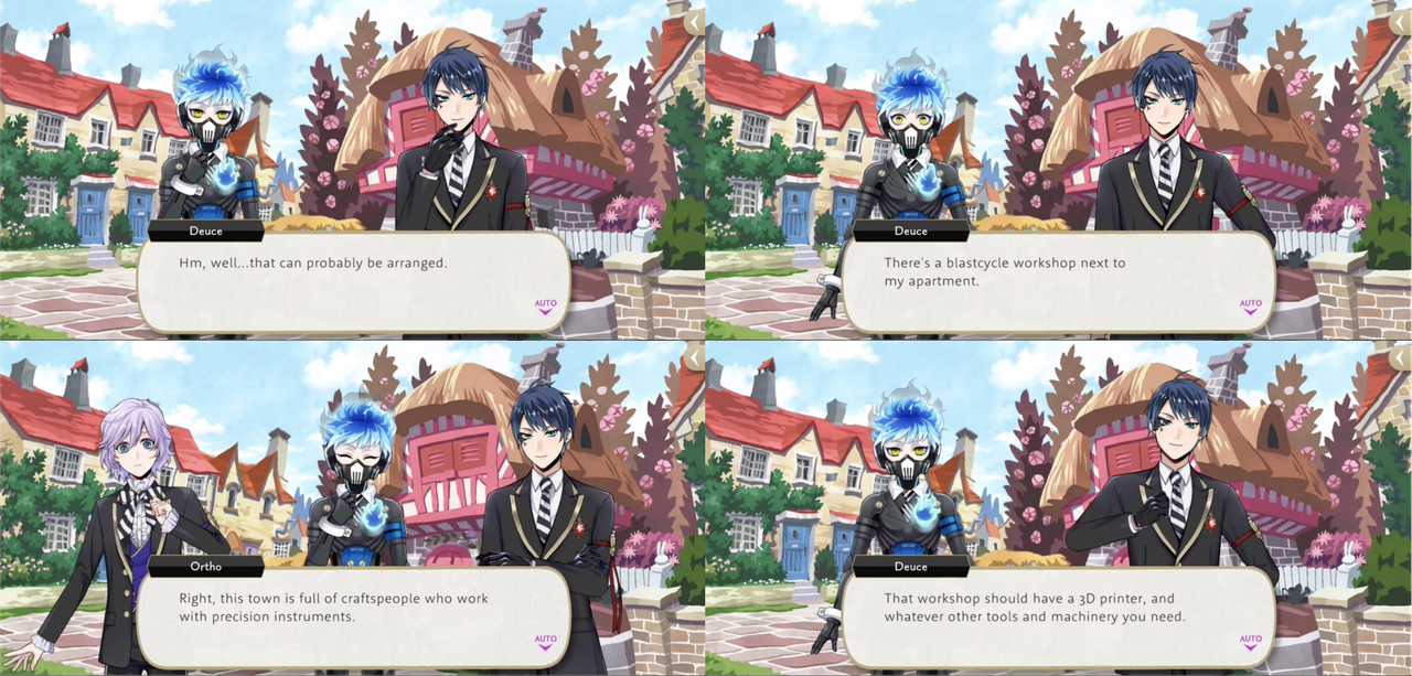 Deuce takes him to a nearby blastcycle workshop and Ortho both designs and crafts his Rabbit Gear on his own, prioritizing “being as similar to the White Rabbit” as possible.