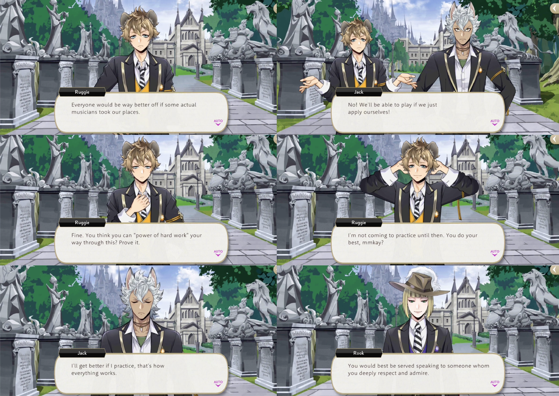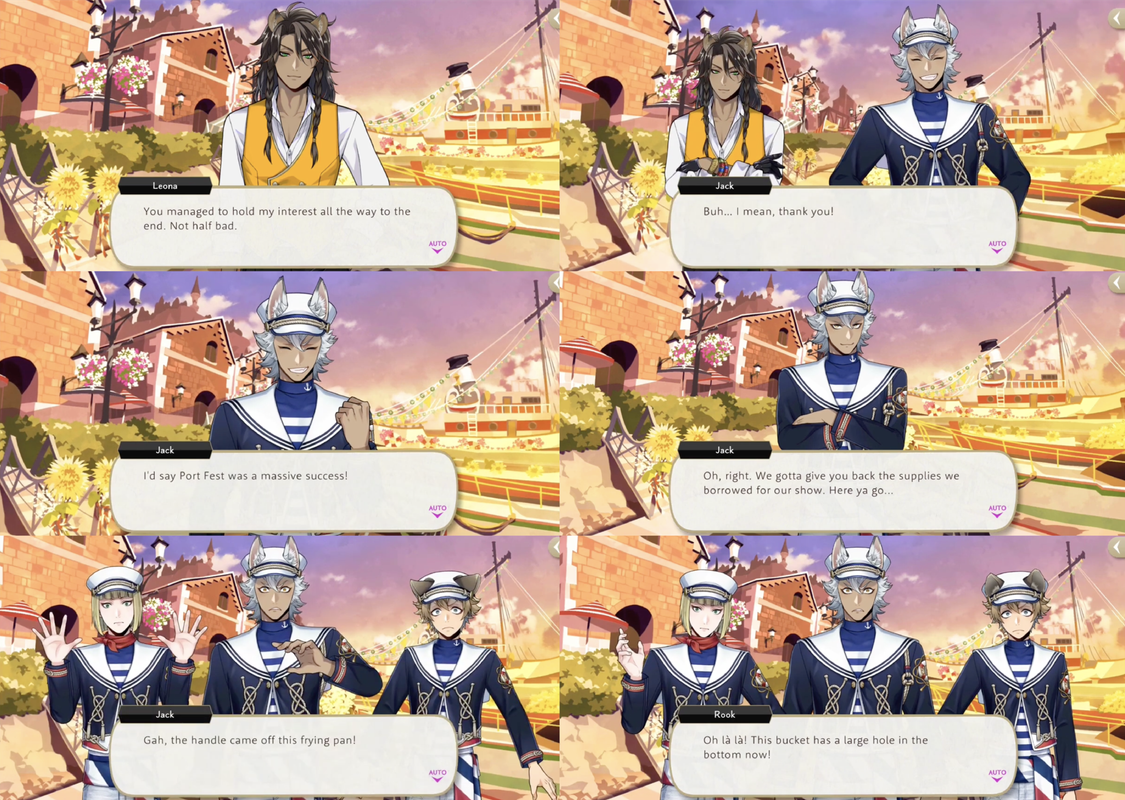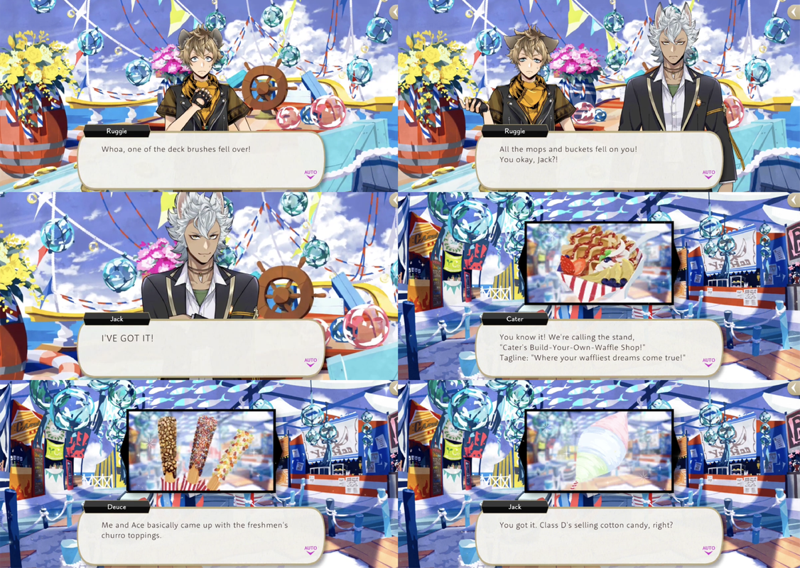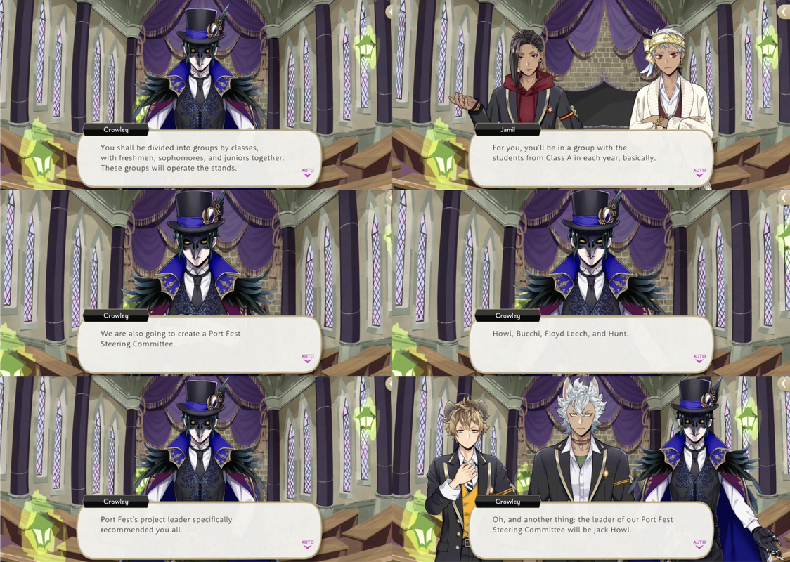 Ruggie sends Jack and the rest of the group away (they met with Floyd and Rook by coincidence) to speak with the manager alone, and it is later revealed that he gave the manager the idea for the students of Night Raven College to help with festival preparations.