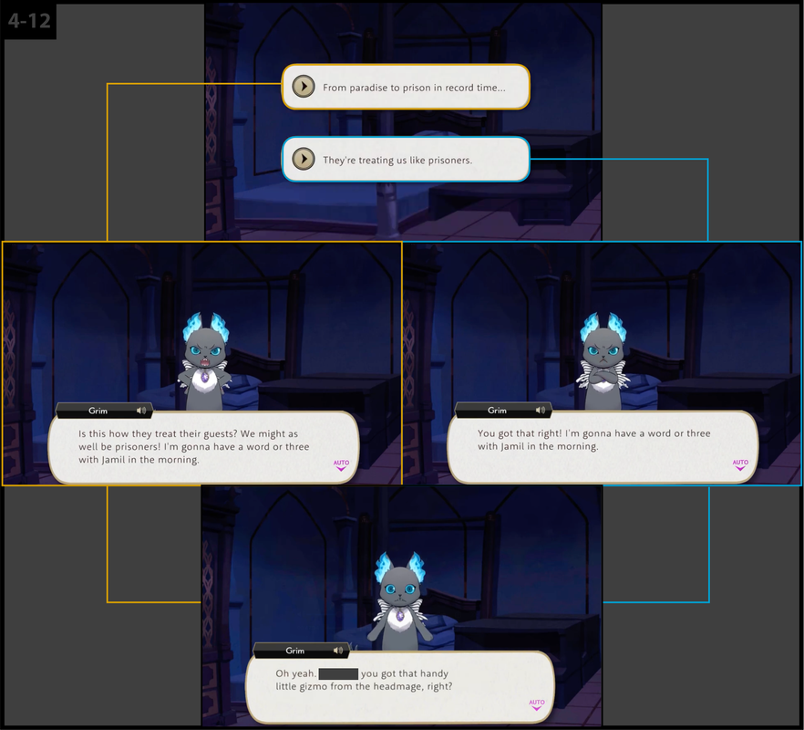 Grim: Is this how they treat their guests? We might as well be prisoners! I’m gonna have a word or three with Jamil in the morning.