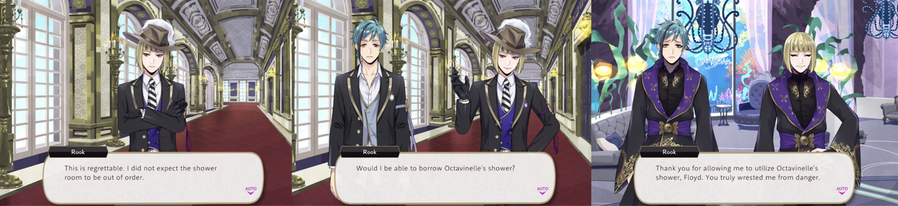 Rook mentions a shower room that they have in Pomefiore, and when he cannot use it, he goes to Floyd about using the one in Octavinelle.