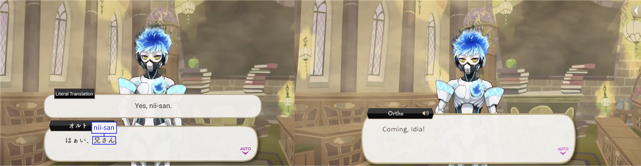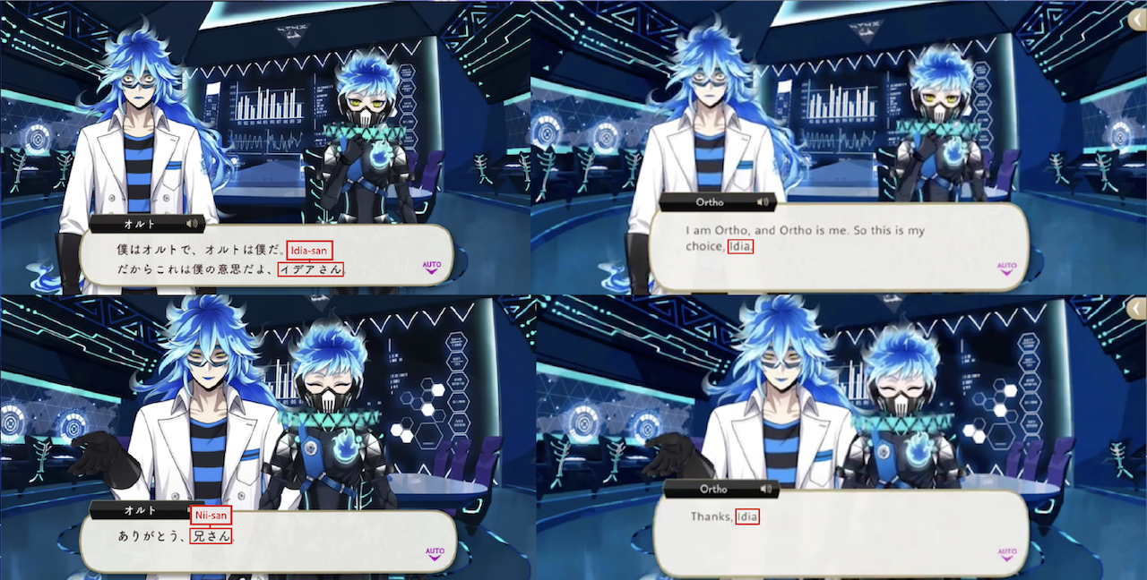 “Calling” pattern: Ortho does not call Idia by name, only by “Nii-san” for “older brother.”