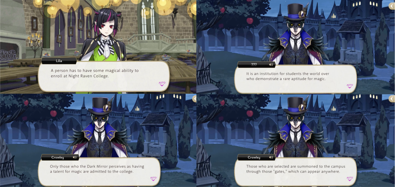 This seems to narrow down the pool of potential students to “must have magic,” and Lilia says, “A person has to have some magical ability to enroll at Night Raven College,” while Crowley explains that students must have “a talent for magic” and “a rare aptitude for magic.”