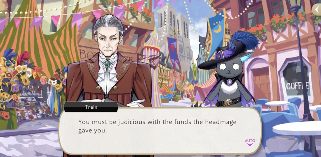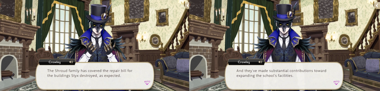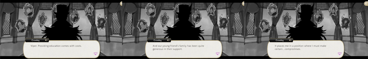 Trein has a line of, “You must be judicious with the funds the headmage gave you,” but we do not technically know if they received money only for Glorious Masquerade or if he is referencing money that they receive from Crowley regularly.