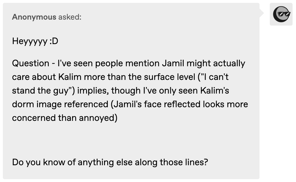 But the illustration was also no accident, meant to hint at maybe even more depth to Jamil that we have yet to see?