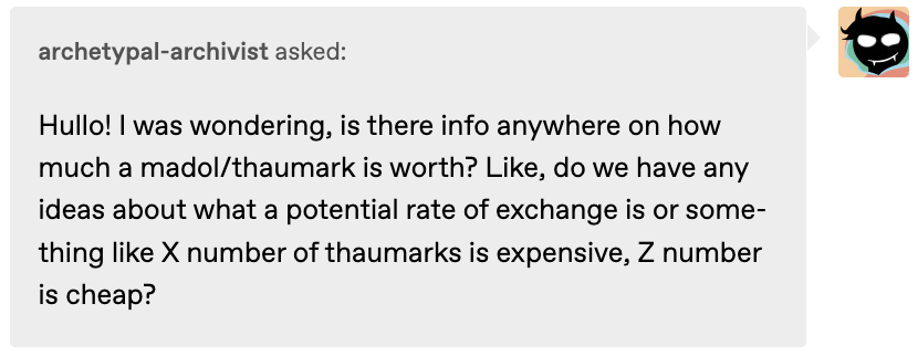 While not explicitly stated by any official sources, the original game’s “madol” might be based on Japanese yen, while EN’s “thaumarks” are likely based on USD.
