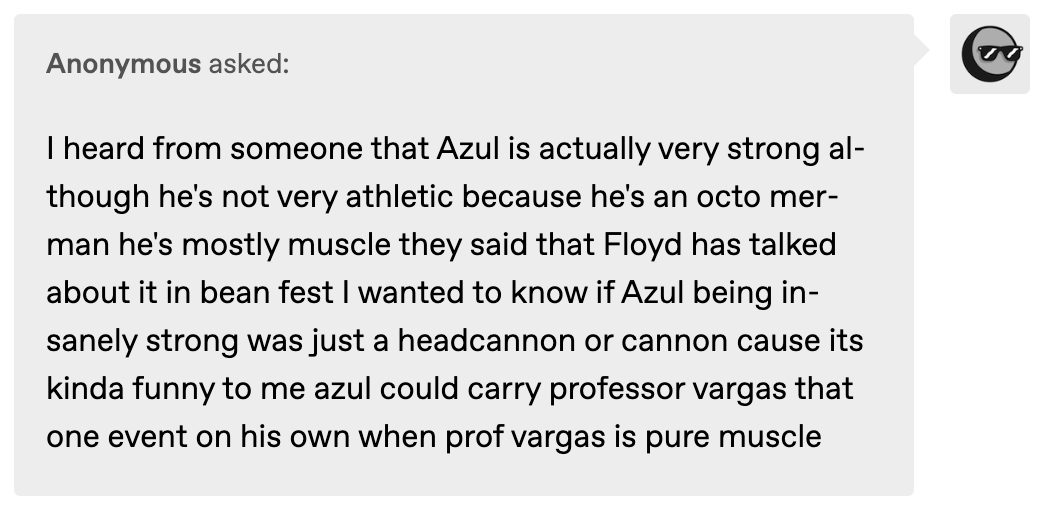 The first information we receive about Azul being stronger than he looks is from Floyd during Beanfest, who explains,