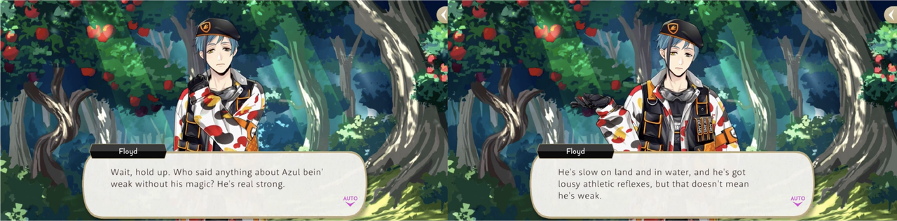 But Leona might just be that strong, because we do have in-game examples of Azul’s impressive physical strength, with Azul holding his own against a reporter when they threaten to bother Vil during Tapis Rouge, to the reporter’s surprise: