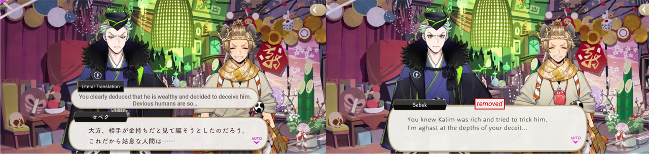 Sebek also calls Ruggie human during New Year’s (removed from his EN dialogue), and calls Leona human during Malleus’ dorm vignette.