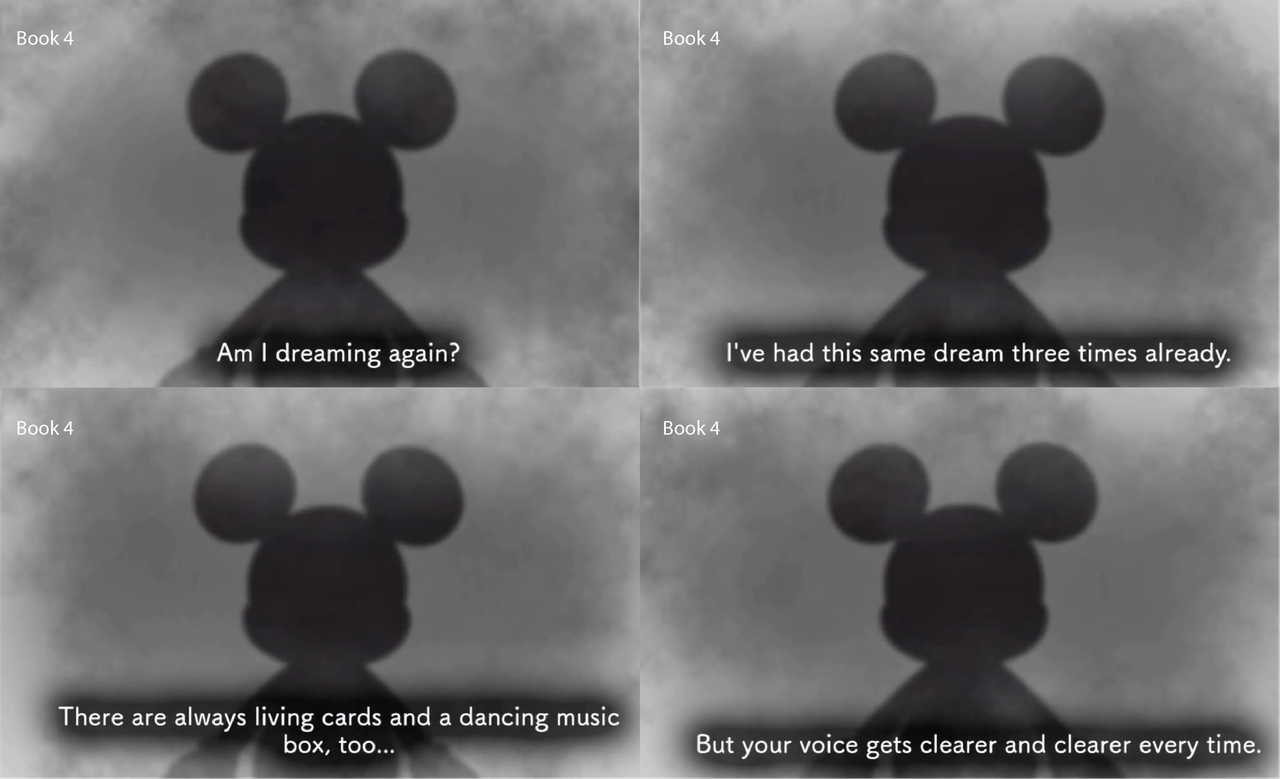*Note: an alternative translation is, “I—they—you—only have a little time left. Whatever you do, don’t let go”, but the situation is so vague that anything is possible.This theory seems to be largely inspired by Mickey’s comment that he has seen the same dream three times but he also says “your voice gets clearer and clearer every time.”