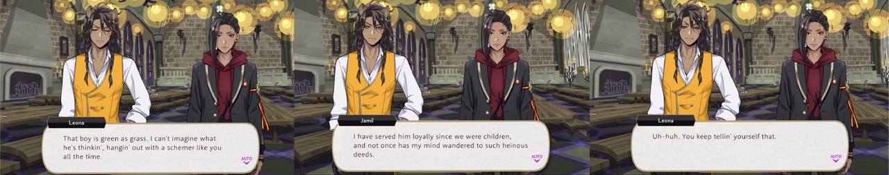 Another scene that is often referenced in the “Leona knows” conversation is Jamil’s school uniform vignette, where Leona accurately predicts that Kalim is in danger from Jamil despite Jamil’s denial.