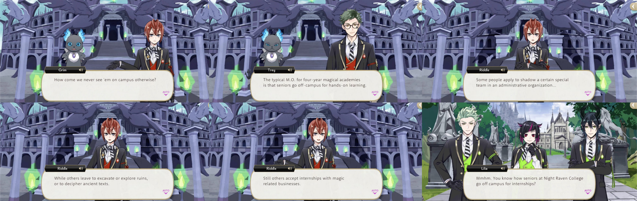 Both Ace and Grim comment on never seeing them at the school, and Trey explains that “The typical M.O. for four-year magical academies is that seniors go off-campus for hands-on learning.”