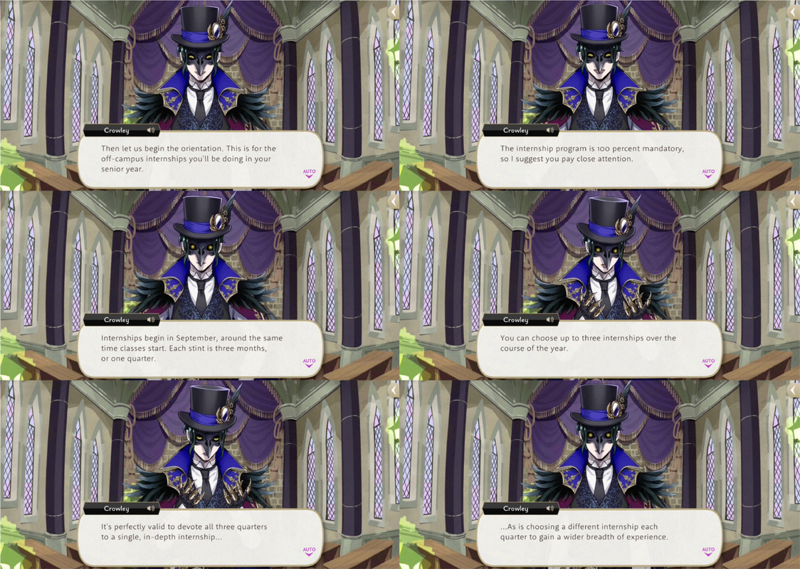“At Night Raven, students spend their senior year at internships and research placements related to their magical professions.”