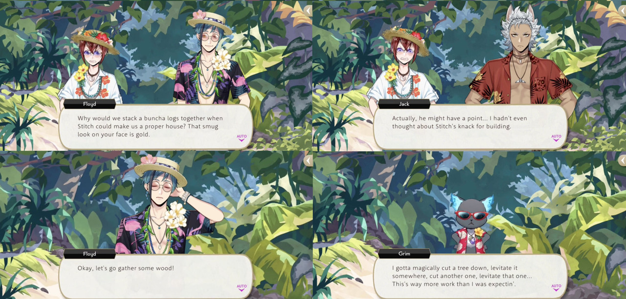 To prepare for the cottage Grim mentions using magic to cut down trees and levitate them, but it is unclear if every member of the group (Riddle, Floyd, Jack) is performing these exact same tasks.