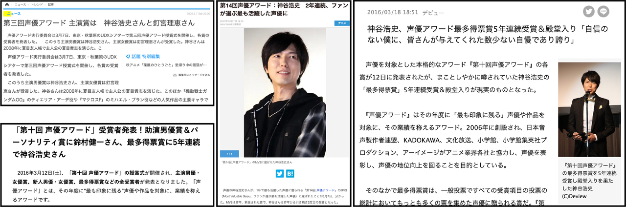 Kamiya Hiroshi is a multi-award winning voice actor, inducted into the Seiyuu Awards Hall of Fame after receiving more votes than any other seiyuu for five years in a row. ( Source )